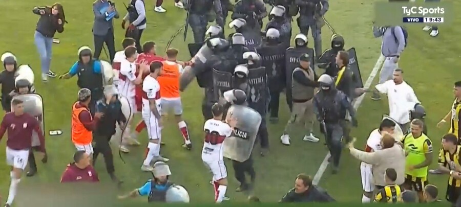 Απίστευτα επεισόδια σημειώθηκαν στον ημιτελικό πλει-οφ ανόδου στην Αργεντινή ανάμεσα σε Ντεπορτίβο Μαδρίν και Μορόν με τους παίκτες των δύο ομάδων να πιάνονται στα χέρια ενώ ακολούθησαν επεισόδια και με αστυνομικούς οι οποίοι έκαναν χρήση σπρέι πιπεριού.